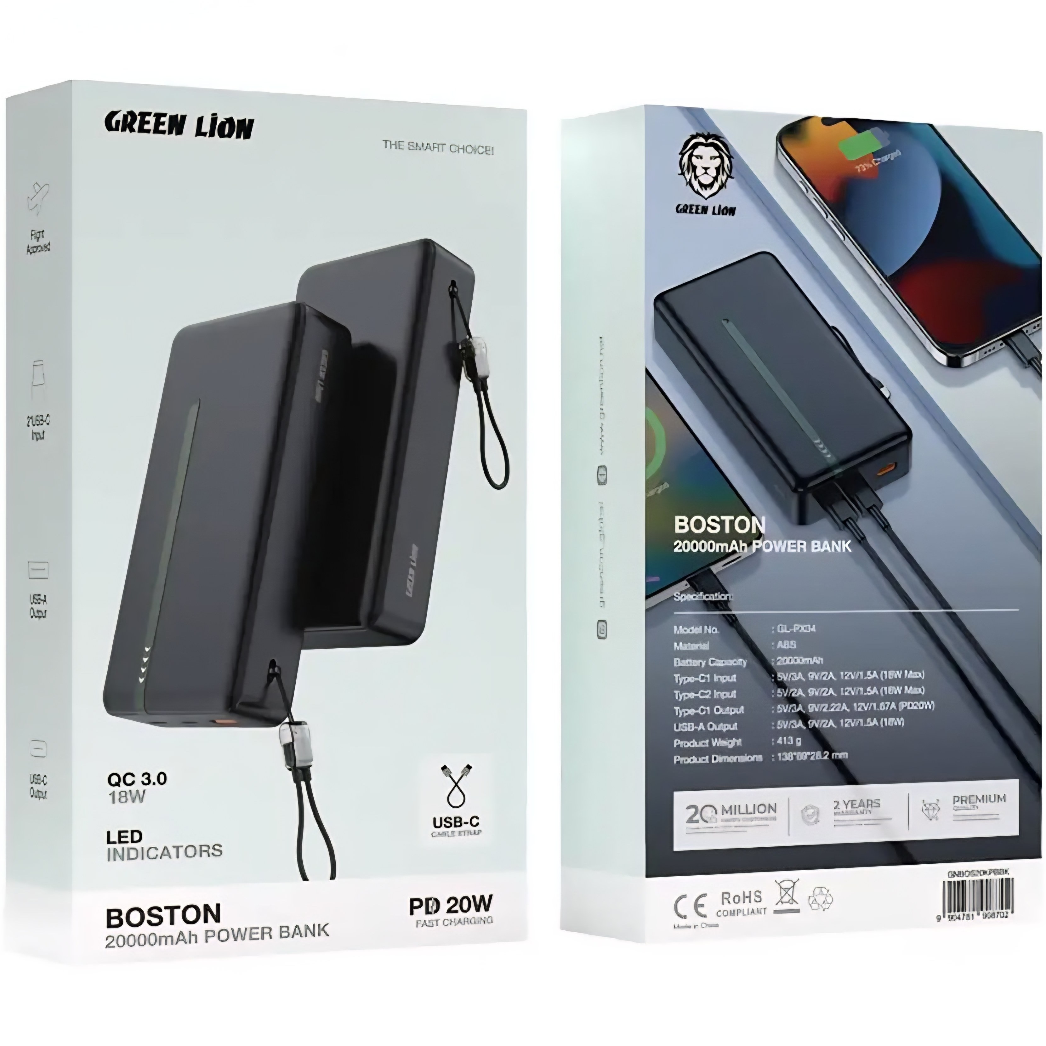 Green Lion Boston 20000mAh Power Bank PD 2 0 W