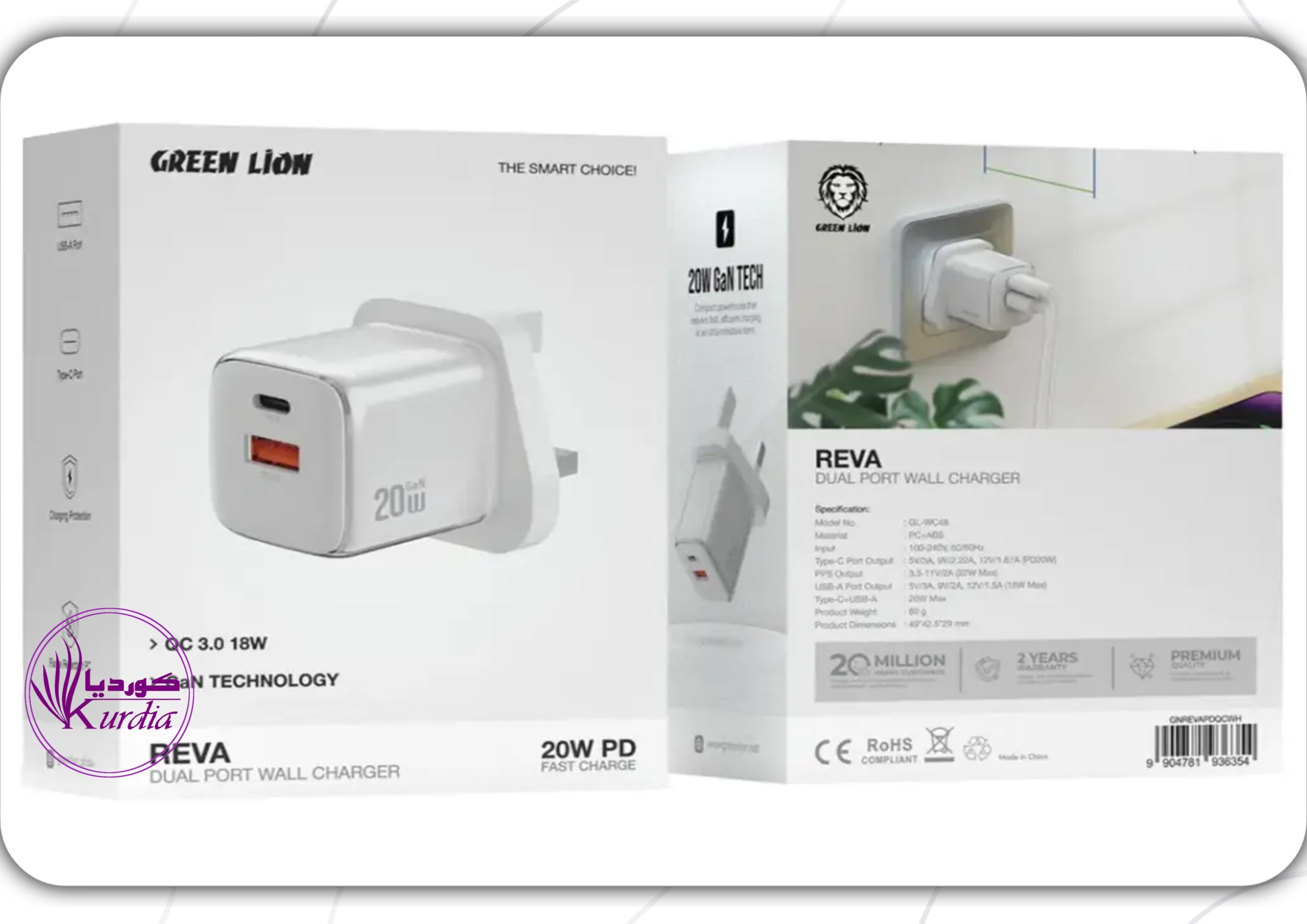 Green Lion Reva Dual Port Wall Charger PD +QC 2 0W